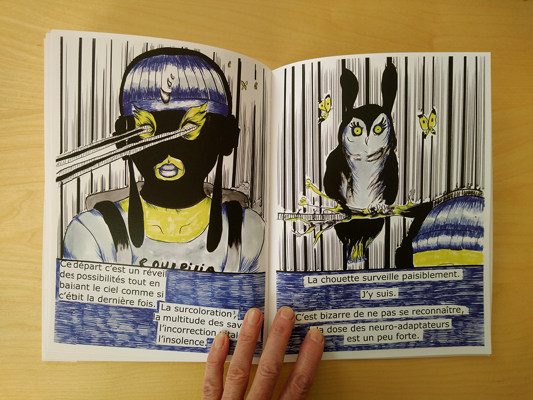 Je ne vais pas me calmer est la suite du recueil artistique NOUTRES (toi le faiseur d’idéal féminin) - 2021, non édité. Entre SF et autofiction, ce récit est la poésie graphique d’une fuite illégale vers un nouveau contexte de vie, illustré par l'hypersensibilité de l’avatar de l’artiste, la fée Utopia. Les incertitudes et pensées la font douter, mais un retour en arrière semble impossible