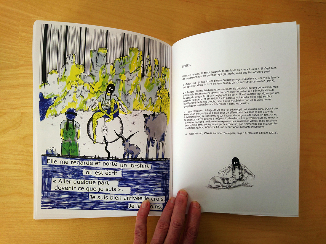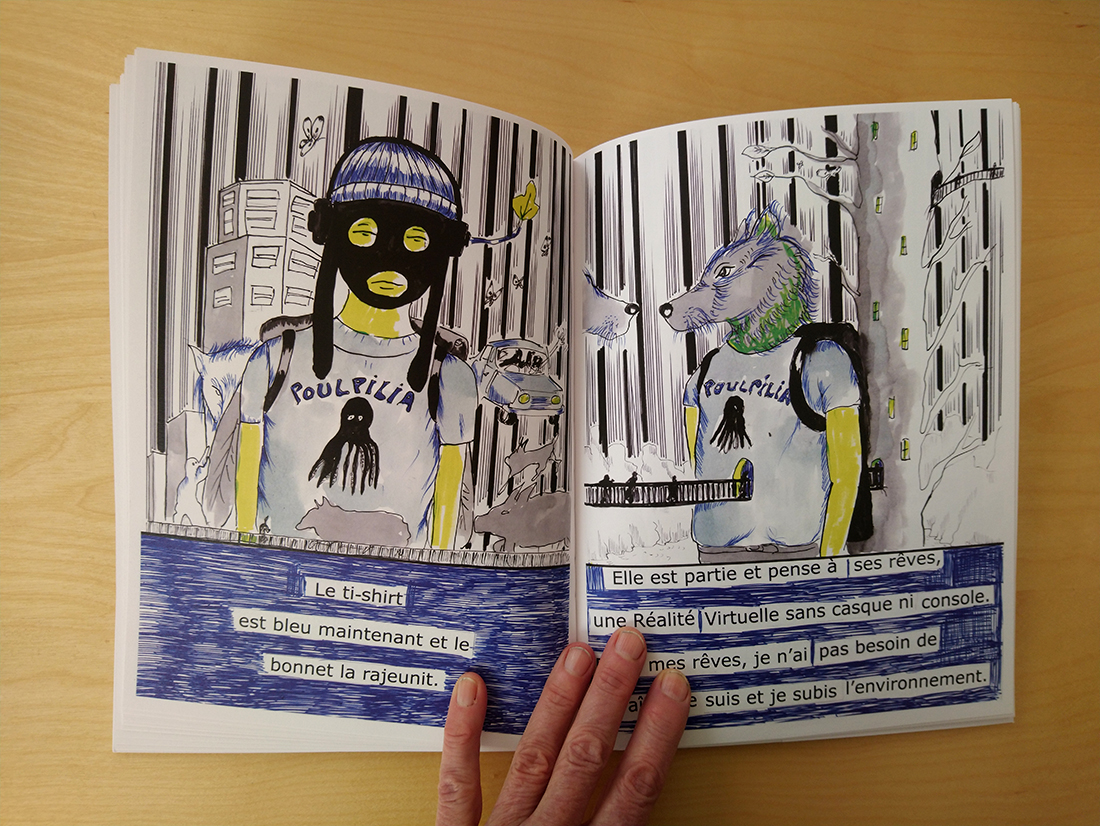 Je ne vais pas me calmer est la suite du recueil artistique NOUTRES (toi le faiseur d’idéal féminin) - 2021, non édité. Entre SF et autofiction, ce récit est la poésie graphique d’une fuite illégale vers un nouveau contexte de vie, illustré par l'hypersensibilité de l’avatar de l’artiste, la fée Utopia. Les incertitudes et pensées la font douter, mais un retour en arrière semble impossible.